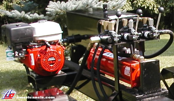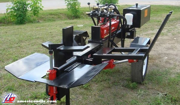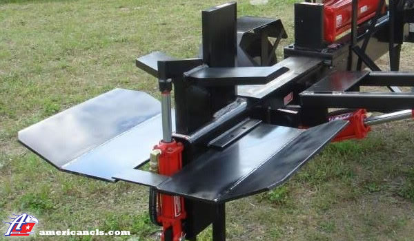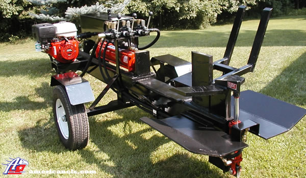 Our AM26HW-1322H combines a standard  12″ Tall Splitting Wedge with adjustable hydraulic wings.  These wings can be lowered out of site or used to create a 4-Way Splitting wedge. When the wings are out of site, this machine can tackle the nasty wood with the full force of the 5″ Diameter Cylinder and 22 GPM 2-Stage Pump. This machine comes standard with 3/8″ Thick Pans. The only option left is either an Electric Start 390GX Engine and/or Steel Fenders.